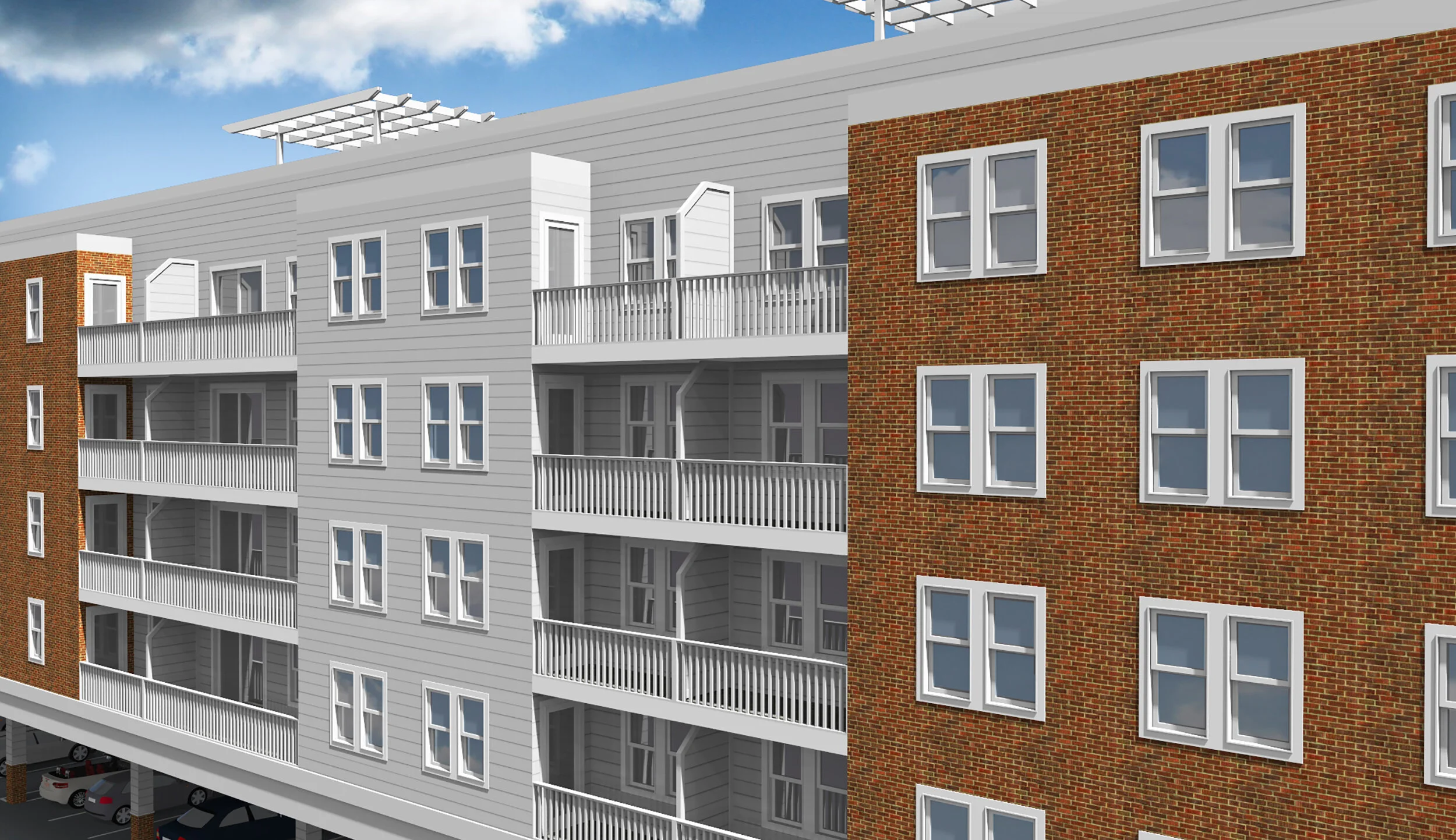 Style: Multifamily residential building with retail